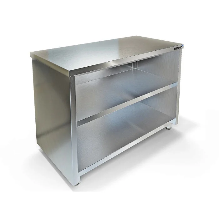 Модель без борта и дверей — удобна для быстрого доступа к посуде и инвентарю. Ножки с регулировкой позволяют выставить стол ровно даже на неровном полу. Доставляется в собранном виде — распаковали и начали работать.