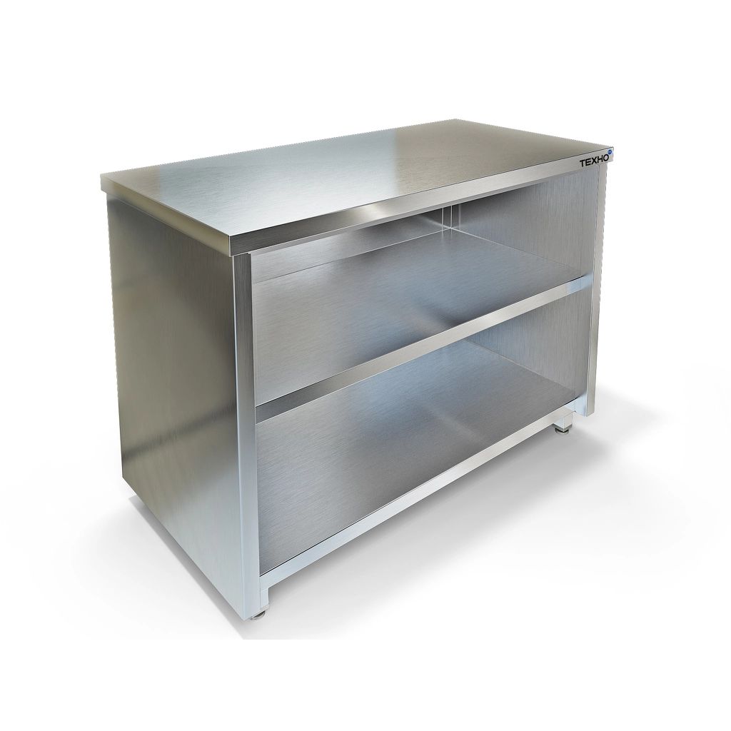 Практичный рабочий стол для кухни, кафе или мастерской — простая и надёжная конструкция, которую можно использовать как разделочный стол и как открытую тумбу для посуды и инвентаря. Без дверей, чтобы всё было под рукой и удобно было доставать.