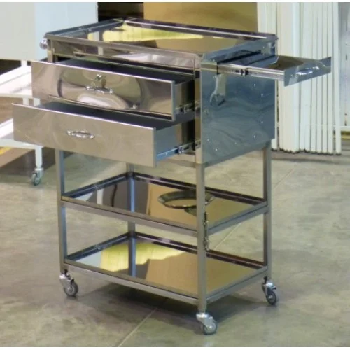 Инструментальный столик СП-02 НН – это функциональное и надежное решение для профессионального использования в медицинских учреждениях. Его основание изготовлено из прочной нержавеющей трубы квадратного сечения, а корпус и остальные элементы выполнены из высококачественной зеркальной нержавеющей стали, что обеспечивает как стильный внешний вид, так и долговечность.