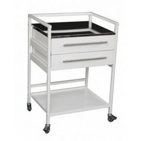 Каркас выполнен из высокопрочного стального профиля квадратного сечения. Сталь покрыта особой полимерно-порошковой краской. Присутствуют 2 полки. Одна из них изготовлена из окрашенного металла, а другая – из нержавеющей стали. Также есть 2 выдвижных ящика, обладающих механизмом телескопического типа.