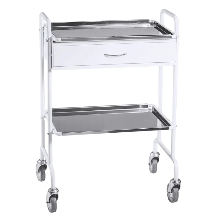 Процедурный столик СМПР-10 — надежный помощник для размещения и транспортировки медицинских инструментов и препаратов в лечебных учреждениях. Оснащенный двумя полками из нержавеющей стали, он обеспечивает оптимальное место для хранения медикаментов и перевязочных материалов. Удобные ручки и выдвижной ящик добавляют функциональности, делая этот столик идеальным решением для выполнения медицинских процедур.