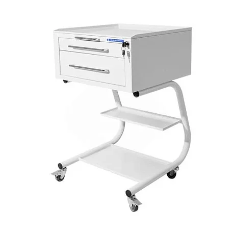 Белмедматериалы СВ2 разработан как удобное «мобильное место хранения» рядом с креслом или рабочей зоной врача. В стоматологии это особенно заметно: когда все разложено по уровням (верхний лоток, ящики, нижние полки), ассистенту проще соблюдать последовательность действий, а врачу — не отвлекаться от пациента.