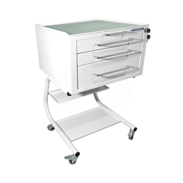 Белмедматериалы СВ3 задуман как универсальный стоматологический столик для размещения инструментов, медикаментов и материалов на рабочем месте врача. Верхняя зона — для того, что требуется «здесь и сейчас», нижняя — для запаса и аккуратного хранения. Благодаря колесам и ручке на фронтальной панели столик легко перемещать в пределах кабинета, не нарушая логистику и не отвлекаясь от пациента.