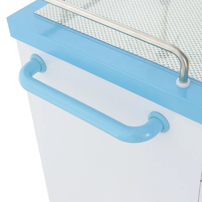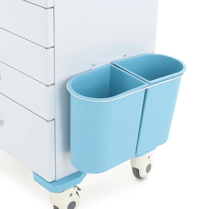 На правой стенке в нижней части закреплены две навесные пластиковые ёмкости голубого цвета размером 213×165×260 мм. Они удобны для размещения вспомогательных материалов и предметов, которые должны быть быстро доступны персоналу во время манипуляций.