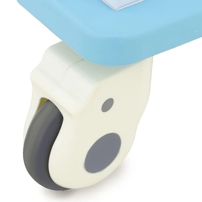 Для реанимационных и процедурных зон особенно важна мобильность оборудования. Столик-тележка имеет габариты 865×510×950 мм, благодаря чему легко проходит в проходах, между кроватями и рядом с медицинской аппаратурой. Четыре самоориентирующихся колеса рояльного типа с поворотом на 360° помогают быстро менять направление движения, а полиуретановые шины делают ход мягким и более тихим.