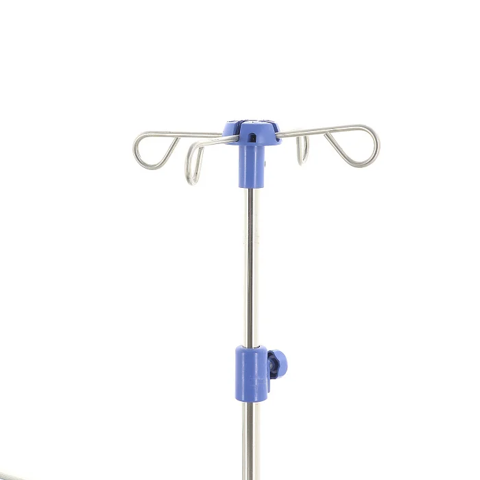 Столик-тележка ЕТ006 TM-010AH-00 поставляется с инфузионной стойкой, установленной справа сзади. Она выполнена из нержавеющей стали, оснащена четырьмя крючками и регулируется по высоте в диапазоне от 1200 до 1800 мм. Бесступенчатая настройка с помощью барашка позволяет быстро подстроить высоту под конкретную задачу и использовать модель для размещения инфузионных систем непосредственно рядом с пациентом.