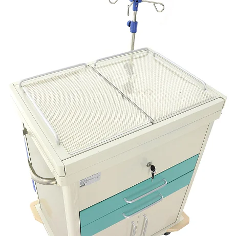 Столик-тележка ЕТ016 ТМ-009АН-00 — практичное решение для оснащения реанимации, процедурных кабинетов и бригад экстренной помощи. Модель продумана для быстрого доступа к медикаментам и инструментам: раздвижная столешница, вместительные ящики с замком, закрытое отделение, внутренний лоток и инфузионная стойка делают работу персонала более организованной. Прочный металлический каркас, манёвренные колёса с тормозами, защитные бамперы и поверхности, устойчивые к дезинфекции, обеспечивают надёжность, мобильность и удобство ежедневной эксплуатации.