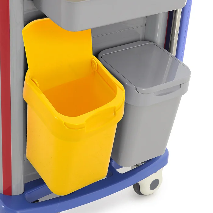 Для медицинской мебели важны не только эргономика и вместительность, но и простота санитарной обработки. Все поверхности столика-тележки устойчивы к дезинфицирующим средствам, что помогает поддерживать необходимый уровень гигиены в отделении. Пластиковые элементы легко очищаются, а нержавеющие детали сохраняют аккуратный внешний вид даже при регулярной обработке. Такое исполнение делает модель удобной для постоянного использования в помещениях с высокими требованиями к чистоте.