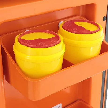 Одна из сильных сторон модели — рационально организованная система хранения. Пять выдвижных ящиков различной высоты позволяют разделить медикаменты, перевязочные материалы, расходники, инструменты и сопутствующие принадлежности по категориям. Внутри предусмотрены перегородки, благодаря которым содержимое не перемешивается и сохраняет порядок даже при интенсивной эксплуатации.
