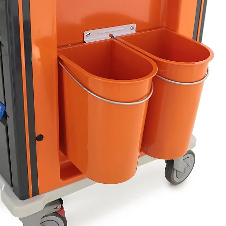 Навесные ёмкости делают систему хранения ещё более функциональной. В комплектацию входят ведра с крышками, банки, прозрачные откидные контейнеры и лоток. Такой набор позволяет удобно распределить одноразовые изделия, мелкий инструмент, растворы, вспомогательные материалы и отходы, чтобы поддерживать порядок непосредственно в рабочей зоне.