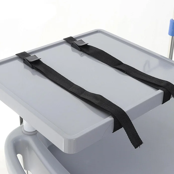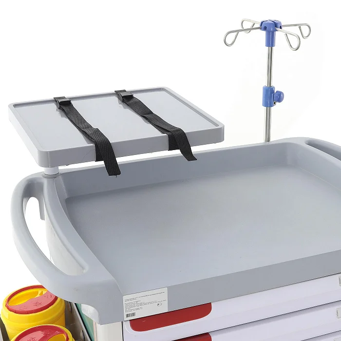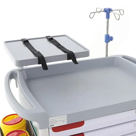 Модель поставляется уже с набором элементов, которые действительно востребованы в критических клинических ситуациях. Поворотный столик с фиксацией и ремнями рассчитан на размещение дефибриллятора или другого необходимого оборудования. Возможность вращения на 360° помогает расположить аппаратуру так, как удобно медицинской бригаде в конкретный момент.