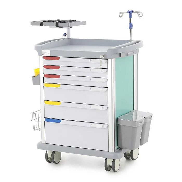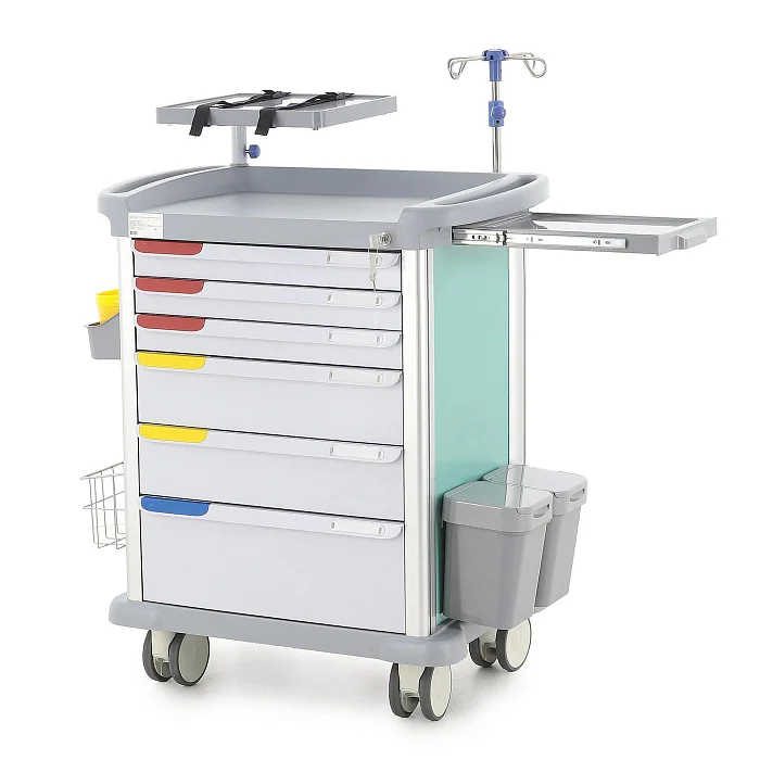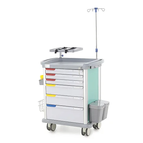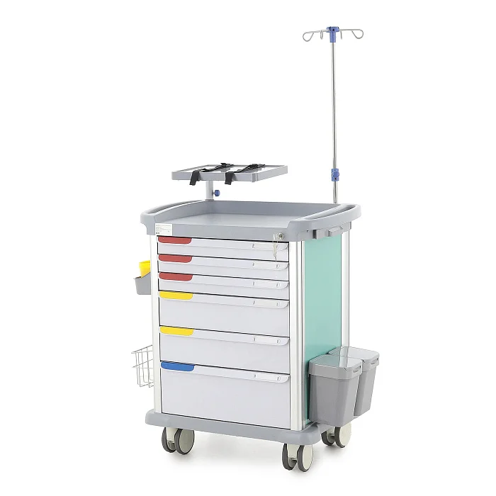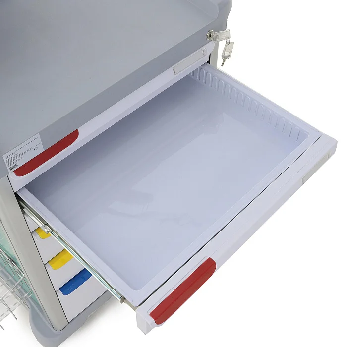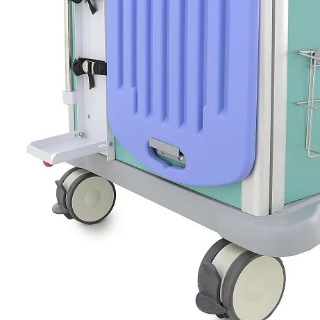 Эта модель подходит медицинским учреждениям, которым нужен не просто передвижной модуль хранения, а полноценный рабочий инструмент для оперативной помощи пациентам. Здесь продумана каждая деталь: от распределения ящиков по высоте до размещения реанимационной доски и поворотного столика для аппаратуры. Такой подход делает изделие особенно ценным для оснащения кабинетов и отделений, где от удобства организации зависит эффективность действий персонала.