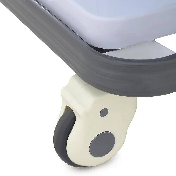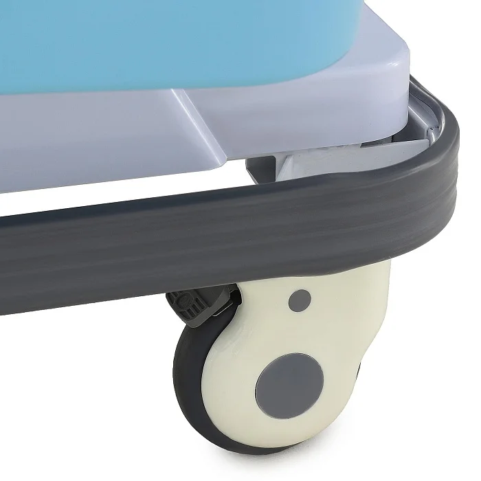 Одно из главных достоинств этой модели — сочетание вместительности и легкости перемещения. Столик-тележка оснащен четырьмя поворотными колесами рояльного типа, которые обеспечивают маневренность даже в ограниченном пространстве между мебелью и оборудованием. Это особенно важно для процедурных кабинетов, где персоналу приходится быстро перестраивать рабочий процесс под текущую задачу. Индивидуальные тормоза на двух передних колесах с блокировкой поворота помогают надежно зафиксировать изделие на месте.