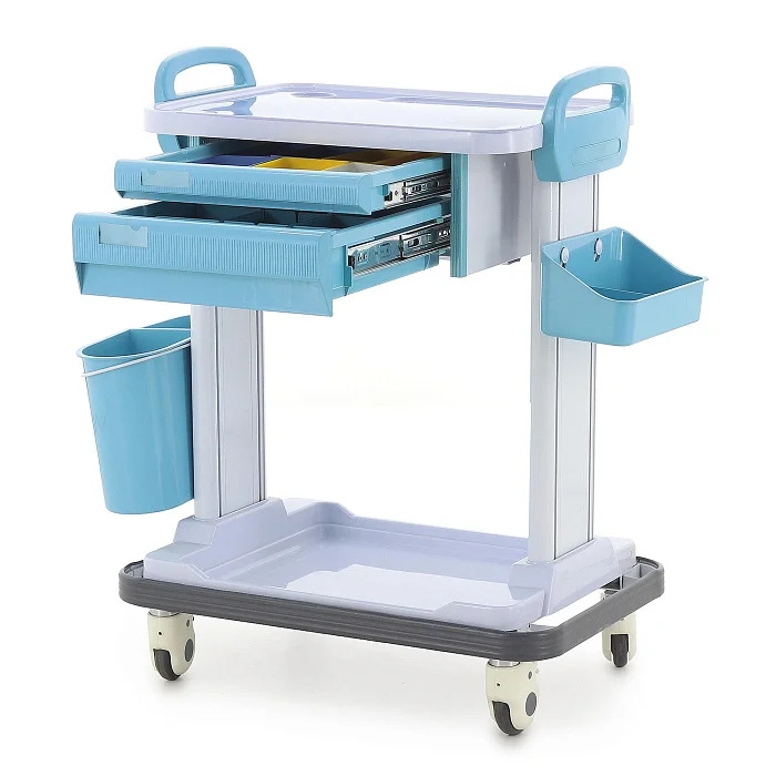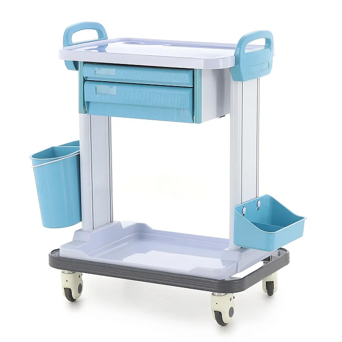 Медицинский столик-тележка СТ108 TM-016AH-00 — удобное решение для терапевтических и процедурных кабинетов, где важны порядок, мобильность и практичность. Модель оснащена двумя выдвижными ящиками с перегородками, навесными ёмкостями для быстрого доступа к необходимым принадлежностям, транспортировочными ручками и защитным бампером. Прочный каркас с износостойким покрытием, алюминиевые стойки и устойчивые к дезинфекции поверхности из пластика делают столик-тележку надёжным помощником для ежедневной работы в поликлиниках, стационарах и медицинских центрах.