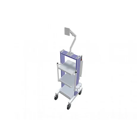 Фармация УМТ2-34 (держатель жест. эндоскопов, поворотн. держатель монитора и емкости) представляет собой стойку для эндоскопических систем. Модель рассчитана на применение в условиях повышенной сложности, отлично подходит для оснащения медицинских кабинетов. Каркас произведен из конструкционного алюминия, что гарантирует высокую жесткость. Для оборудования предусмотрено 3 полки из оцинкованной стали с порошковым покрытием. По бокам стойки установлены рукоятки, углы защищены бамперами. Дополнительно в конструкции предусмотрен держатель для 3 жестких эндоскопов (высота стойки составляет 200 мм), складной держатель для емкости, поворотный держатель для монитора (угол поворота составляет 360 град). На опорах установлены ролики, на двух из них предусмотрены стопорные механизмы.