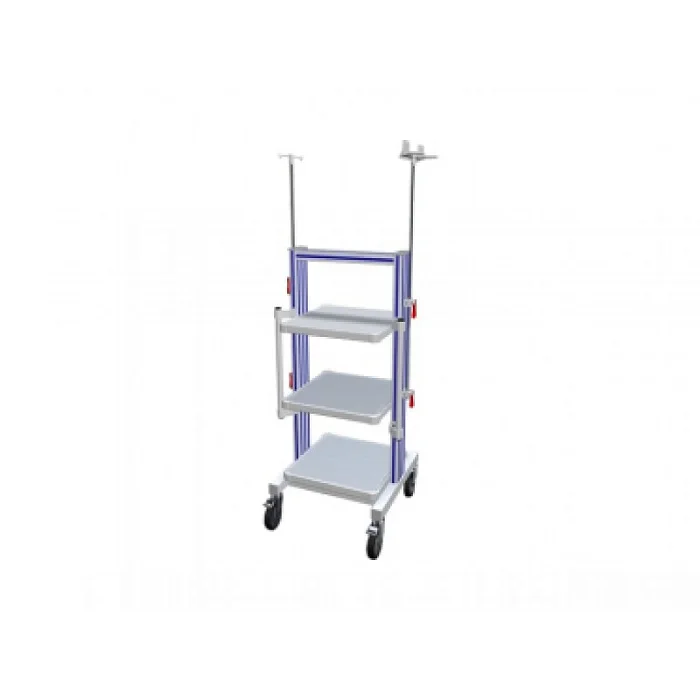 Фармация УМТ3-34 (держатель гибк. эндоскопов, штатив) представляет собой эндоскопическую стойку, предназначенную для установки оборудования. Модель отлично подходит для оснащения кардиологий, физиотерапевтических кабинетов, пульмонологий и так далее. Для производства каркаса использовался конструкционный алюминий. Три полки выполнены из оцинкованной стали с покрытием из порошковой краски. В конструкции предусмотрено 2 боковые рукоятки, а также противоударные бамперы. Дополнительно стойка оснащена держателем для двух гибких эндоскопов (рассчитан на нагрузку до 8 кг, длина штатива равна 110 мм), инфузионным штативом, установленный сбоку (оснащен 2-мя крючками для баллонов). Опоры выполнены в виде роликов, два из них оснащены тормозами.