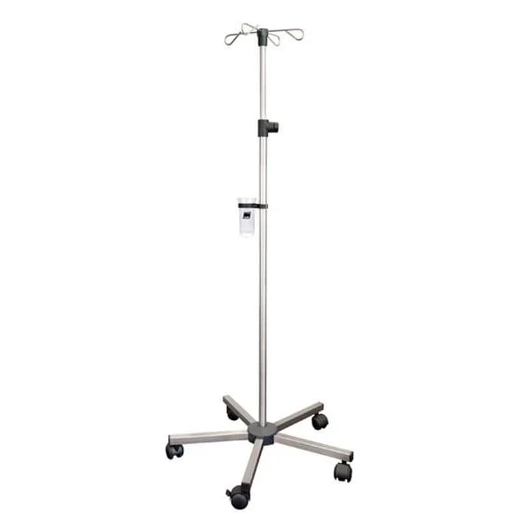 KaWe 09.11005.002 – инфузионная стойка, выполненная из прочной нержавеющей стали. Штатив имеет телескопическую конструкцию, выполнен из трубы диаметром 19 и 25 мм. В конструкции предусмотрено пятилучевое основание, пластиковая крестовина. Для установки инфузионных пакетов предусмотрено 4 крючка, также присутствует держатель для стакана для сбора остатков препаратов.