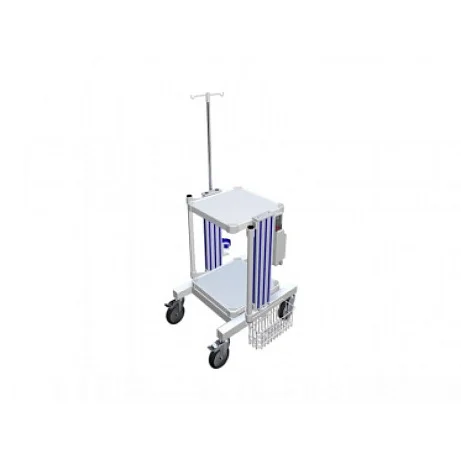 Фармация УМТ2-13 (корзина, штатив, держатель емкости, блок пит.) - медицинская приборная стойка. Модель предназначена для установки оборудования, хранения инвентаря и приборов. В конструкции используется стойка из конструкционного алюминия. Стойка состоит из двух полок из листовой оцинкованной стали с порошковым покрытием. По бокам установлены ручки для транспортировки, также предусмотрены защитные противоударные бамперы. В конструкции дополнительно присутствует корзина для хранения инструмента, инфузионный штатив с 2 крючками для баллонов, стальной держатель емкости, блок питания для подключения оборудования с 3 розетками.