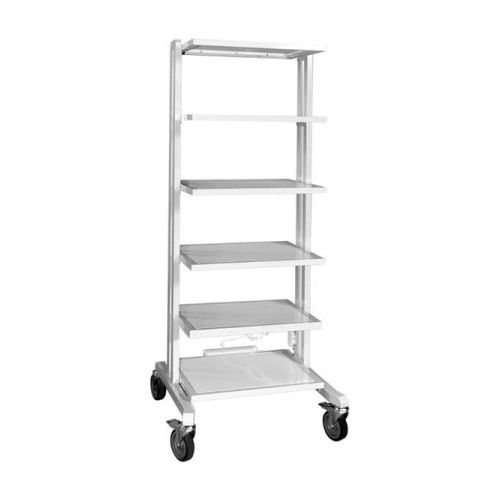 КМ-Магма СП-06 представляет собой стойку для установки медицинского оборудования. Конструкция состоит из двух прямых стоек и 6 полок. На поверхность стоек нанесено эпоксидное покрытие из порошковой краски, устойчивое к механическим воздействиям, обработке дезинфицирующими составами. Полки можно отрегулировать по высоте, они выполнены из листовой углеродистой стали. На тыльной стороне опоры установлен блок питания с 6 розетками для подключения оборудования. Опоры выполнены из е? роликов, передние оснащены тормозами.
