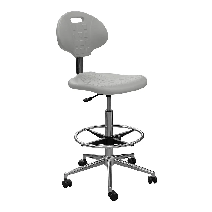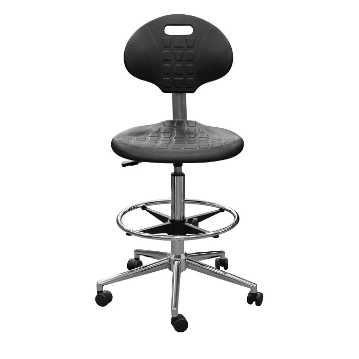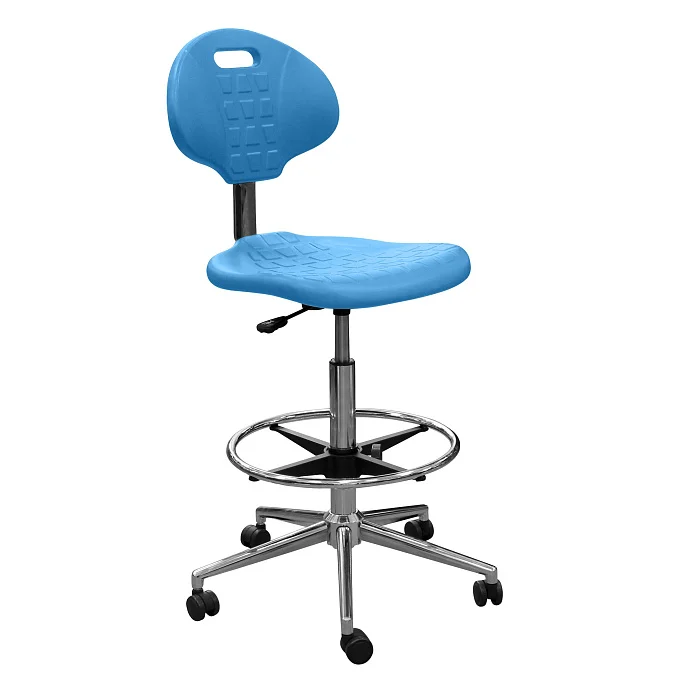 КР12-В спроектирован как «рабочий» стул для зон, где сотрудник долго находится в динамичной посадке: лабораторные столы, посты регистрации и сортировки, стоматологические и медицинские кабинеты, процедурные, стерилизационные, учебные классы, участки контроля качества на производстве. Высокая конструкция особенно удобна там, где стандартный офисный стул оказывается низким и вынуждает сутулиться или поднимать плечи при работе.