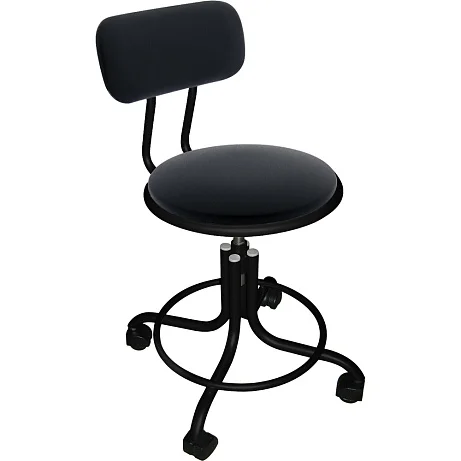 Стул медицинский Техсервис М101-07 (каркас черный, и/к черный) — компактный винтовой стул с мягким сиденьем и спинкой для процедурных и смотровых кабинетов. Надежная винтовая регулировка высоты долговечнее газлифта, эргономичный прогиб спинки и кольцевая подставка для ног повышают комфорт. Мебельные колеса облегчают перемещение, разборная конструкция упрощает логистику и хранение. Подходит для стационаров, амбулаторий и соцучреждений.