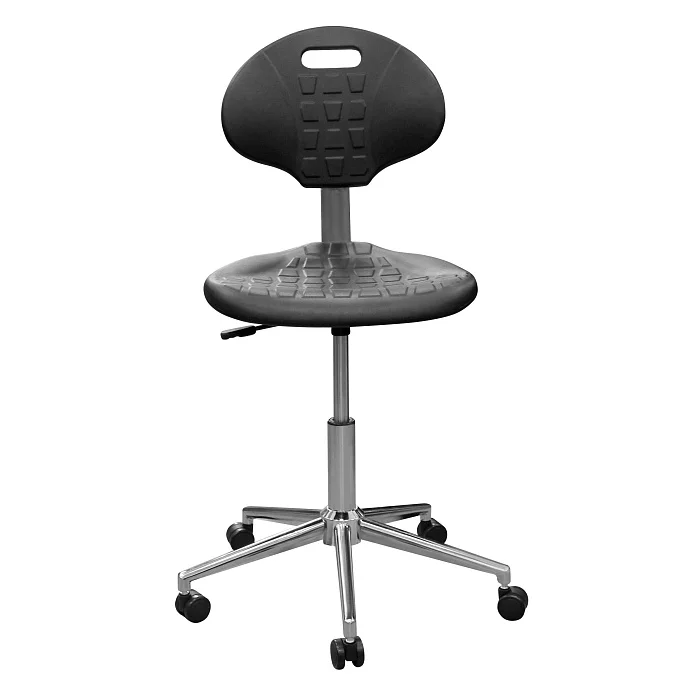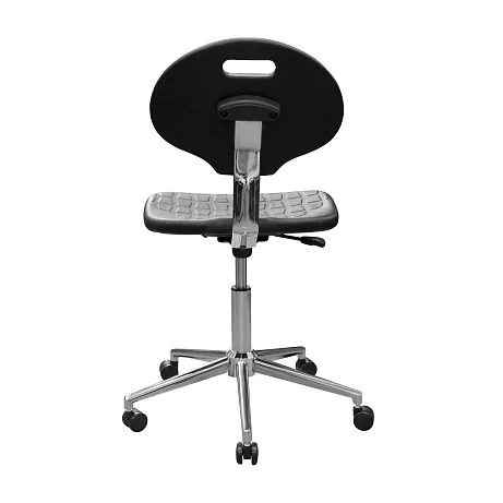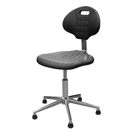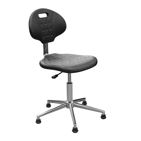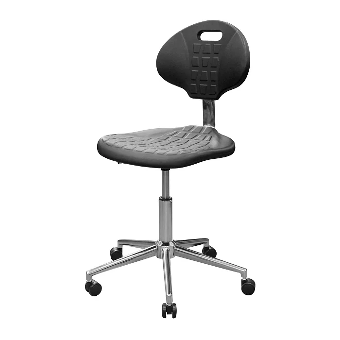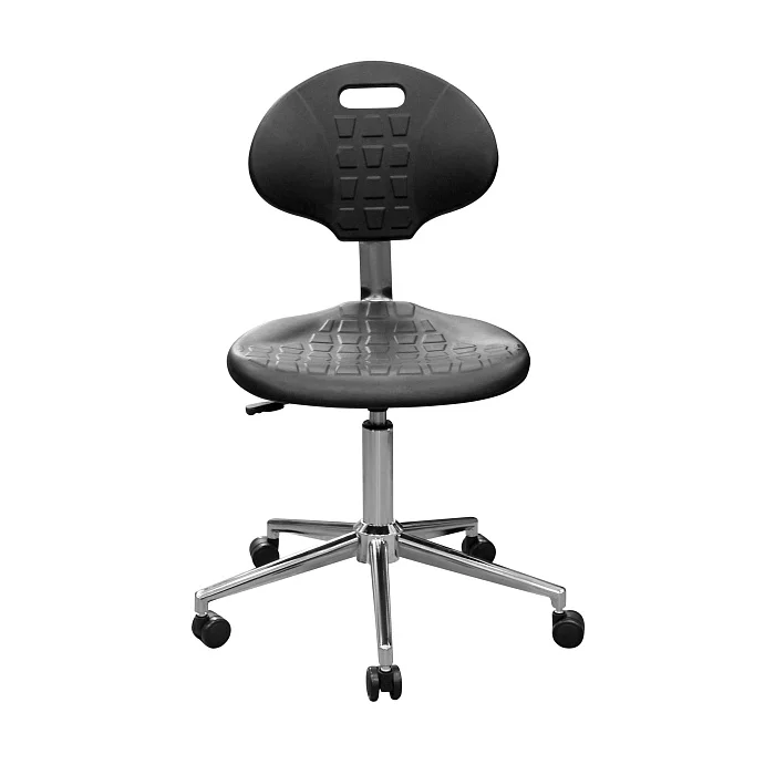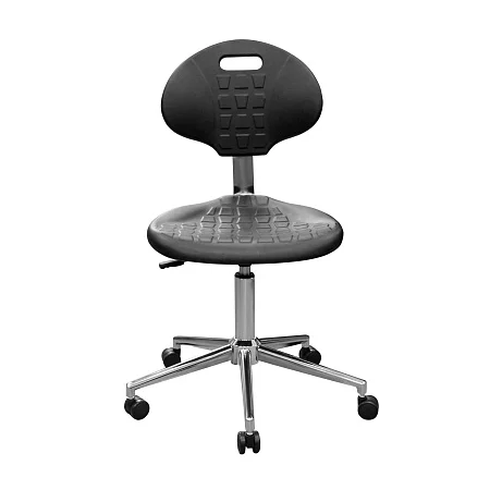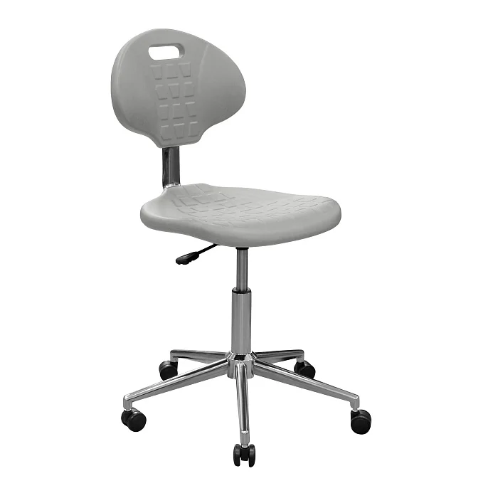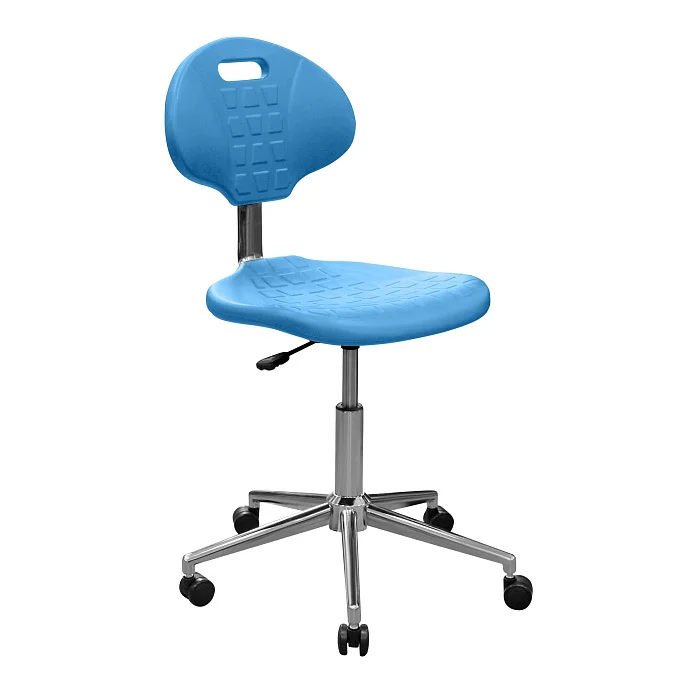 Сиденье и спинка выполнены из полиуретана — упругого материала, который воспринимается заметно мягче фанеры, пластика и «жёстких» накладок. Для персонала это не про «роскошь», а про нормальную посадку в течение смены, когда приходится много времени проводить за столом, микроскопом или у пациента.