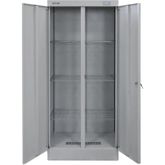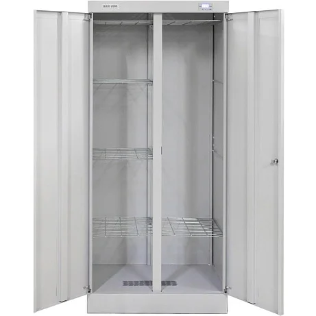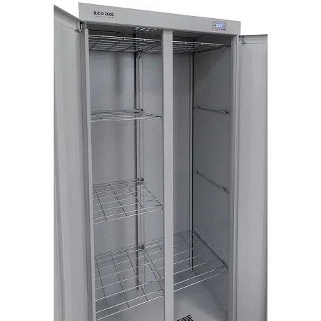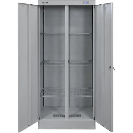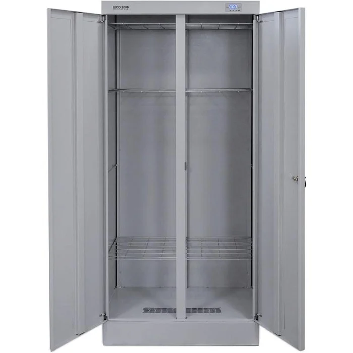С помощью сушильного шкафа ШСО-2000 можно сушить мокрую одежду, белье, обувь или инвентарь. Внутри шкафа расположены сетчатые полки, а также вешалки для одежды. Шкаф закрывается на две распашные двери с замком. Для сушки предусмотрен нагревательный элемент и электродвигатель. Шкаф может подсоединяться к вытяжной вентиляции, для этого в крыше предусмотрен фланец для гофротрубы. Выгодно приобрести сушильный шкаф ШСО-2000 вы можете в магазине МедМебель. Мы предлагаем самые низкие цены. Заказ оформляется прямо на сайте. Доставка по Москве курьерской службой.