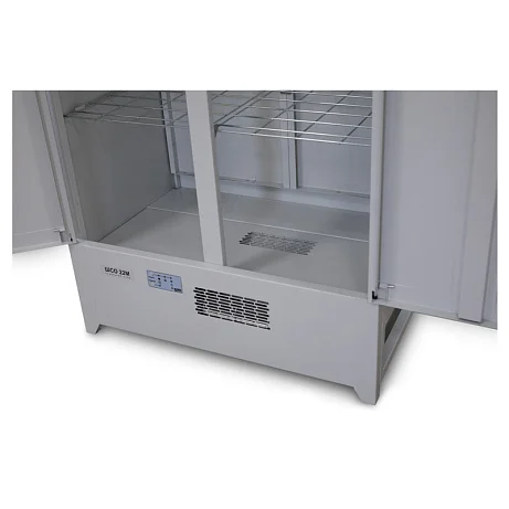 В нижнюю подставку встроен блок нагрева, в состав которого входят тангенциальный вентилятор, игольчатый слюдяной нагреватель и электронный блок управления. Такое сочетание обеспечивает стабильную подачу воздуха и понятное управление режимами. На лицевой стороне расположены кнопки и световая индикация, поэтому пользоваться шкафом удобно даже при интенсивной загрузке.