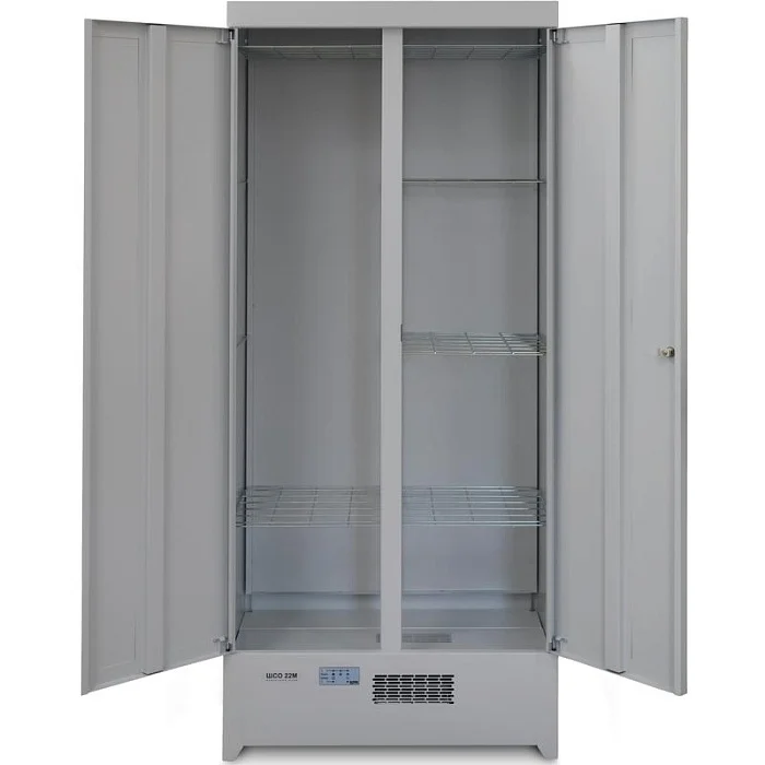 Для сушки одежды, белья, обуви и других предметов можно использовать сушильный шкаф ШСО-22М. Перегородка разделяет шкаф на два отделения, каждое из которых оборудовано тремя подвесными полками с сетчатым основанием. Шкаф закрывается на двухстворчатую распашную дверь с замками. Внизу шкафа имеется откидная дверца, через которую можно осуществлять управление тепловентилятором. Также управлять тепловентилятором можно с помощью пульта дистанционного управления. Лучшая цена на сушильный шкаф ШСО-22М предложена в интернет-магазине МедМебель. Поспешите оформить заказ на сайте магазина, и курьерская служба доставит покупку в любую точку Москвы.