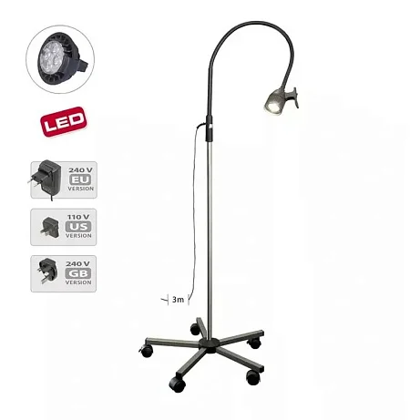 Светодиодная технология обеспечивает эффективное освещение, а корпус и стойка выполнены из качественной нержавеющей стали — решение, рассчитанное на ежедневную работу в медицинской среде.