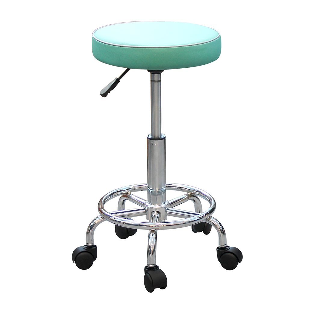 Обивка выполнена из импортной экокожи — практичного материала для медицинских помещений: она удобна в уходе, не впитывает загрязнения и сохраняет аккуратный вид при регулярной обработке. Визуально табурет выглядит «чисто» и современно, а гальваническое покрытие каркаса подчёркивает аккуратность исполнения и добавляет стойкости к истиранию.