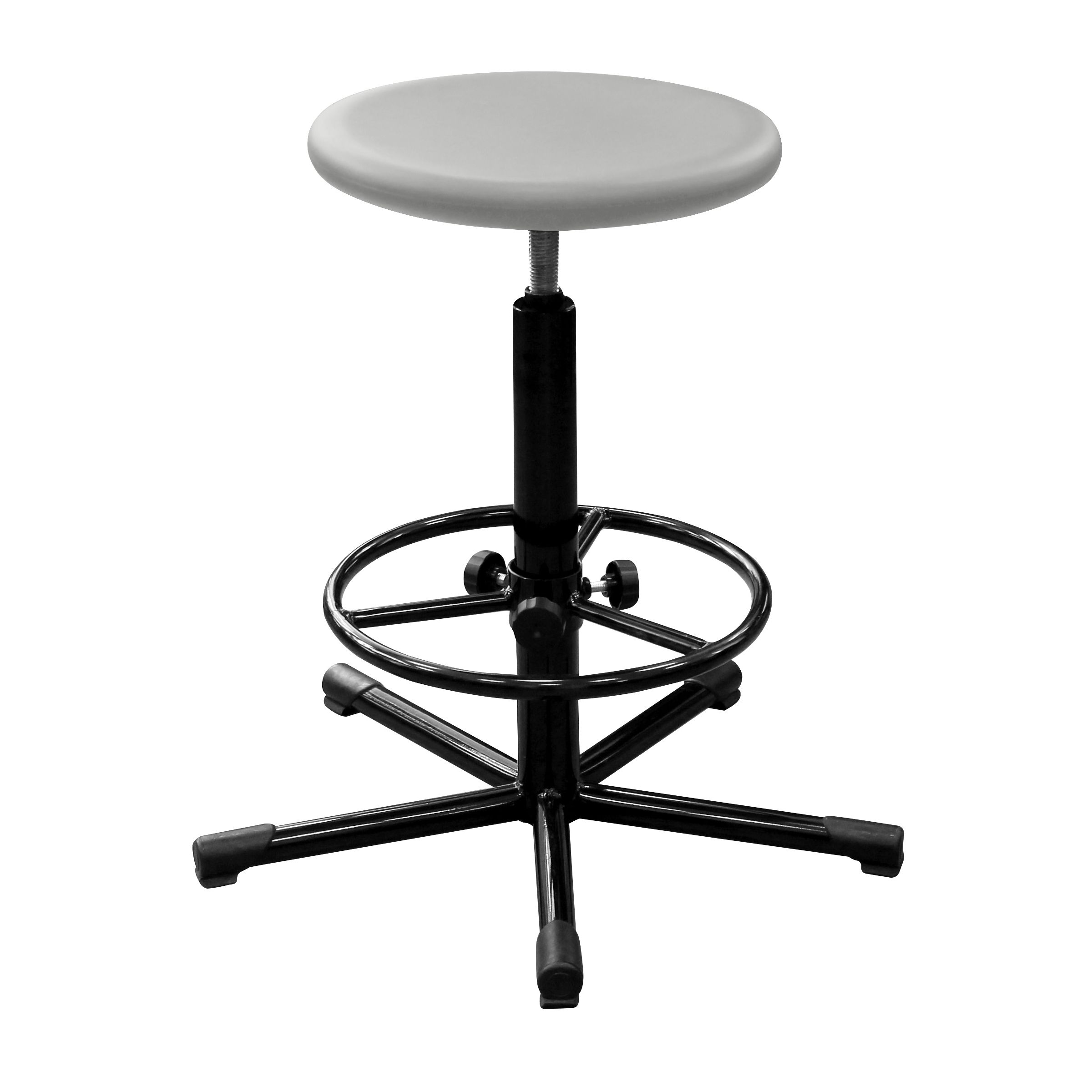 Т09 — высокий лабораторный табурет для работы за столами с высотой столешницы от 810 мм. Оснащён износостойким сиденьем из пенополиуретана и надёжной винтовой опорой для точной регулировки высоты.