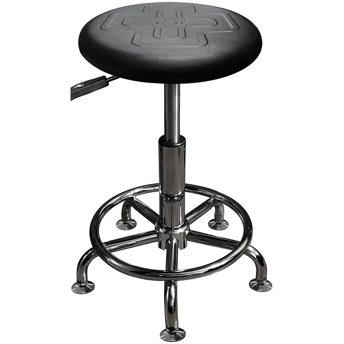 Конструкция табурета сборно-разборная и оснащена прочным стальным каркасом, что гарантирует надежность. С помощью газлифтовой системы высота сиденья легко регулируется, что позволяет адаптировать его под любые потребности. Опорное кольцо для ног добавляет удобства, а качественные подпятники обеспечивают устойчивость и защиту пола.