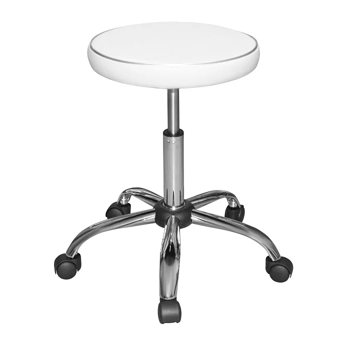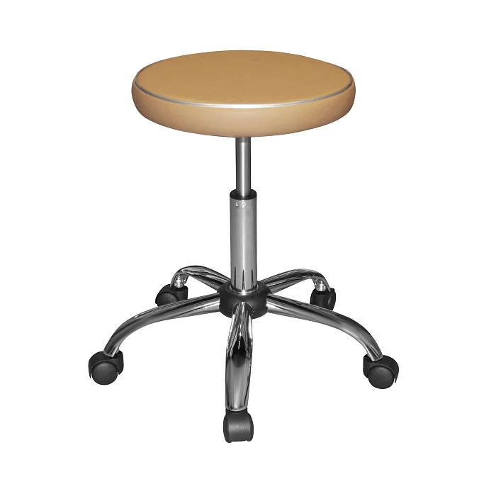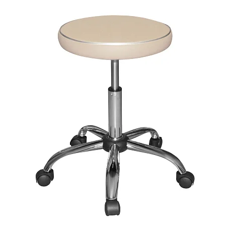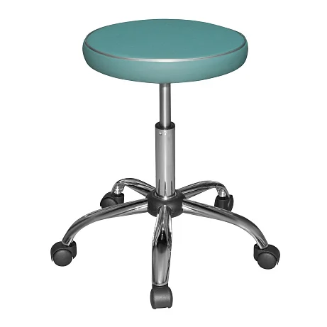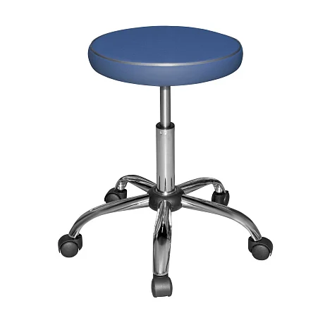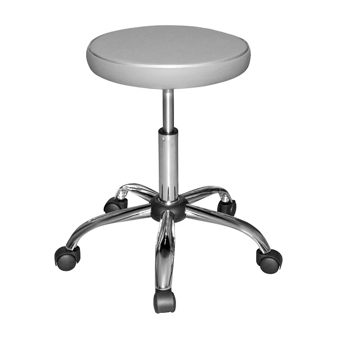 Сиденье диаметром 380 мм с толщиной 50 мм обеспечивает понятную, «собранную» посадку — без ощущения жесткой посадки, но и без лишней мягкости, которая мешает устойчивости. Регулировка высоты в диапазоне 465–615 мм позволяет подстроить табурет под разные сценарии: от работы «ниже» у пациента до более высокой посадки у оборудования. Газ-лифт дает плавный ход и удобную настройку прямо в процессе работы, без остановок и лишних действий.