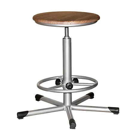 Табурет винтовой Т02-1 (МДФ) для лабораторий, мастерских, учебных классов и производства. Жёсткое сиденье из МДФ толщиной 16 мм в цвете «бук» (диаметр 375 мм) выдерживает интенсивную эксплуатацию и сохраняет аккуратный внешний вид. Высоту сиденья и кольца-опоры для ног (диаметр 360 мм, фиксация в нужном положении) можно настроить под конкретного пользователя, что удобно при работе за разными столами и верстаками.