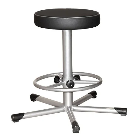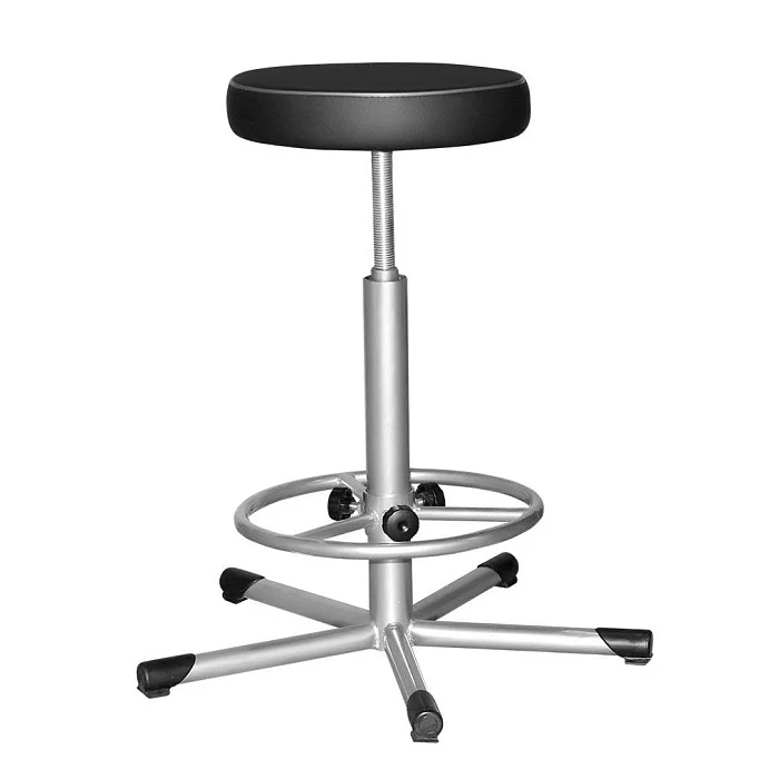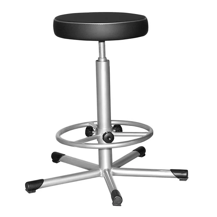 Табурет на винтовой опоре Т02-1 — компактное, но удивительно комфортное рабочее место. Утолщённое сиденье диаметром 330 мм (по заказу — до 360 мм) с аккуратным кантом по периметру выдерживает ежедневную нагрузку и не проседает со временем. Винтовой механизм позволяет плавно настроить высоту сиденья в диапазоне от 540 до 660 мм, а регулируемое по высоте кольцо-опора для ног (диаметр 360 мм, с надёжными фиксаторами) помогает снять напряжение с ног при долгой работе.
