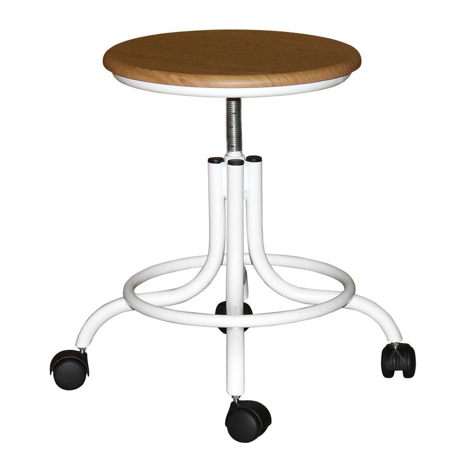 Табурет винтовой, модели Т01-1, сиденье МДФ, с кольцом - опорой для ног, на колёсных опорах.