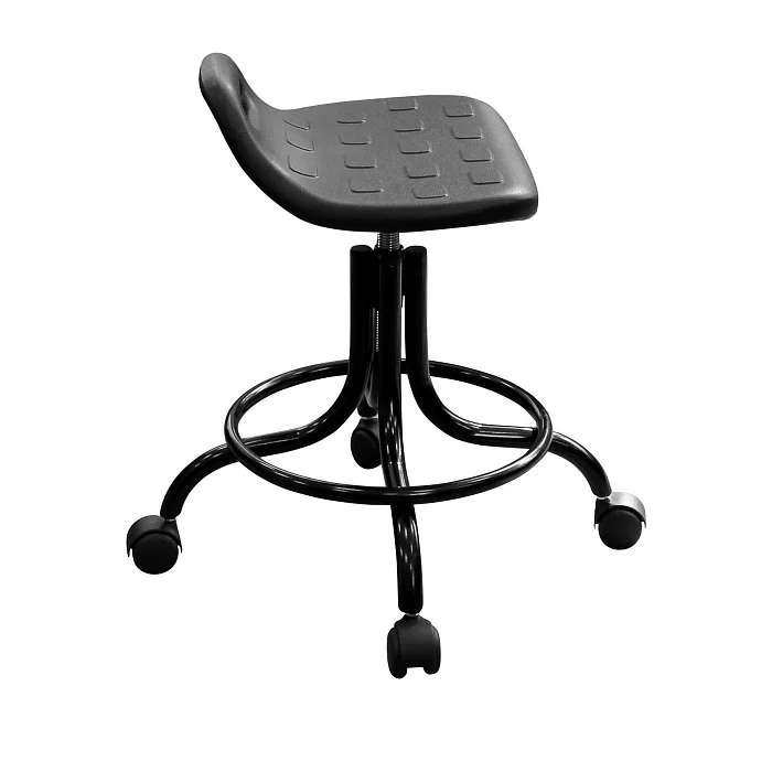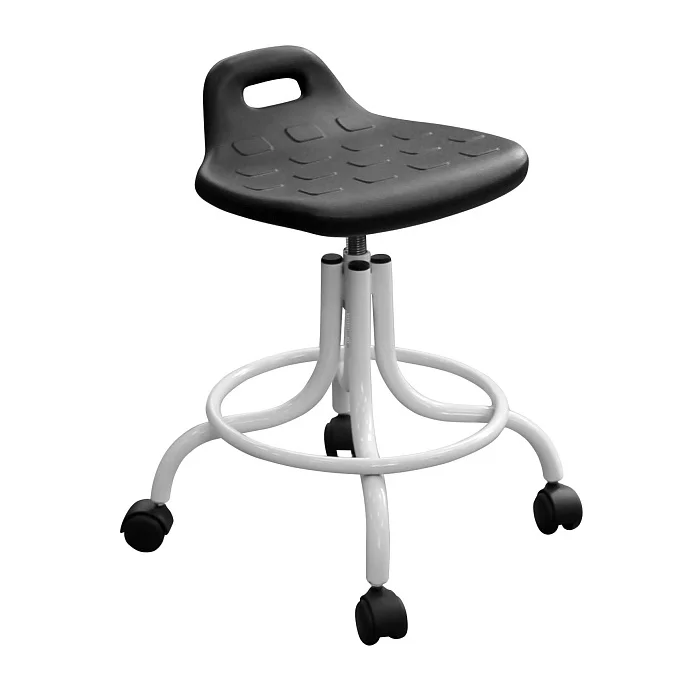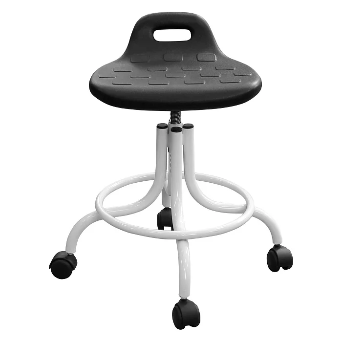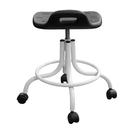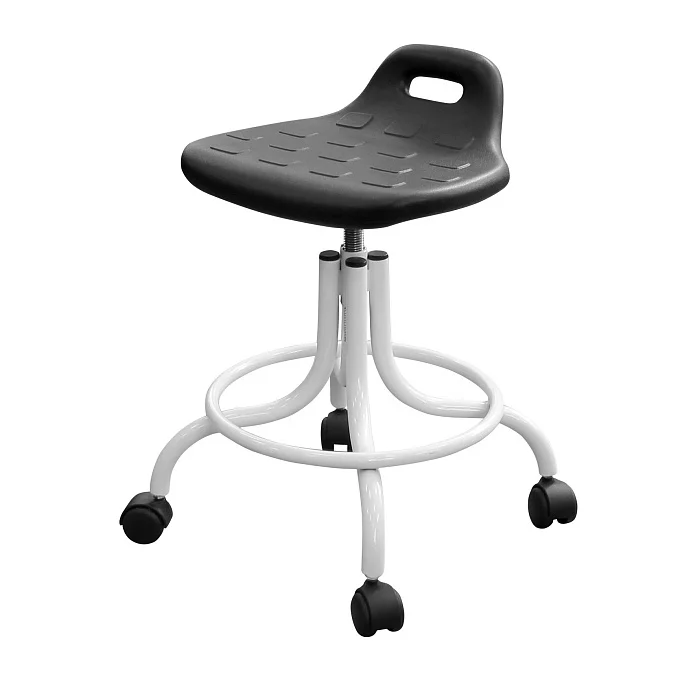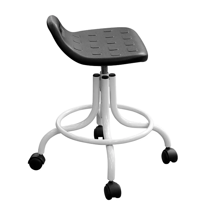 Эта модель особенно удобна там, где персоналу приходится часто менять позицию, работать «на подкате» и регулярно обрабатывать мебель: процедурные кабинеты, манипуляционные, перевязочные, кабинеты функциональной диагностики, стоматологические клиники, косметология, лаборатории, регистратуры и зоны подготовки инструментов. За счет устойчивой базы и опоры для ног табурет помогает держать рабочую позу, а винтовой механизм позволяет точно подстроить высоту под рост сотрудника и высоту столешницы/кресла пациента.