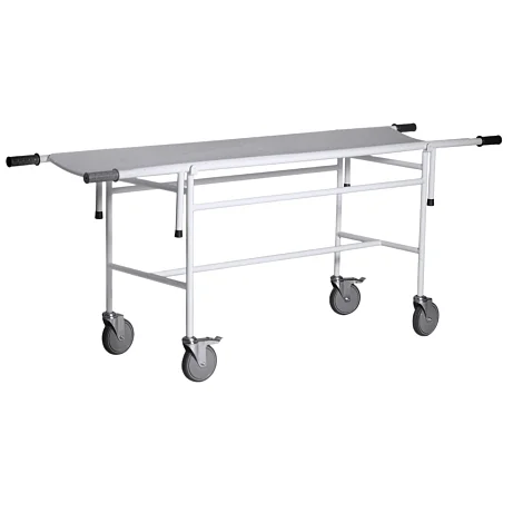 Тележка ТБС-01 предназначена для безопасной и удобной перевозки пациентов внутри больничного корпуса. Она состоит из прочной подвижной рамы и съемных носилок, выполненных из стального профиля с полимерно-порошковым покрытием, что обеспечивает защиту при санитарной обработке. Односекционное ложе носилок из металла гарантирует надежность, а эргономичные резиновые ручки и обрезиненные опоры повышают комфорт при использовании. Тележка оснащена четырьмя самоориентирующимися колесами диаметром 150 мм, два из которых имеют тормоз для дополнительной безопасности.