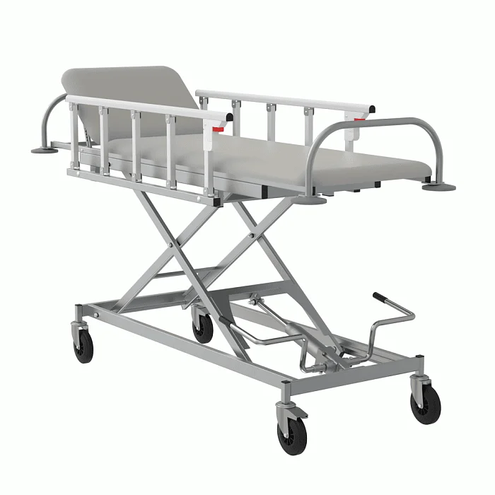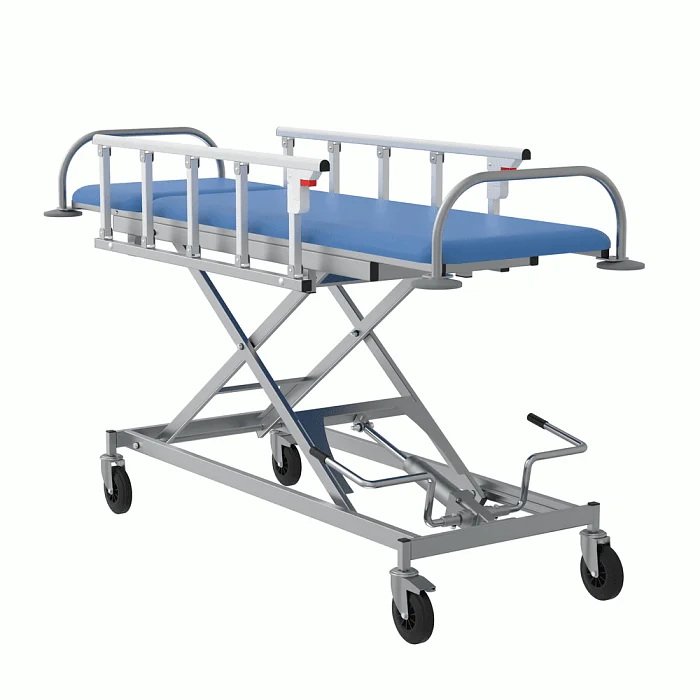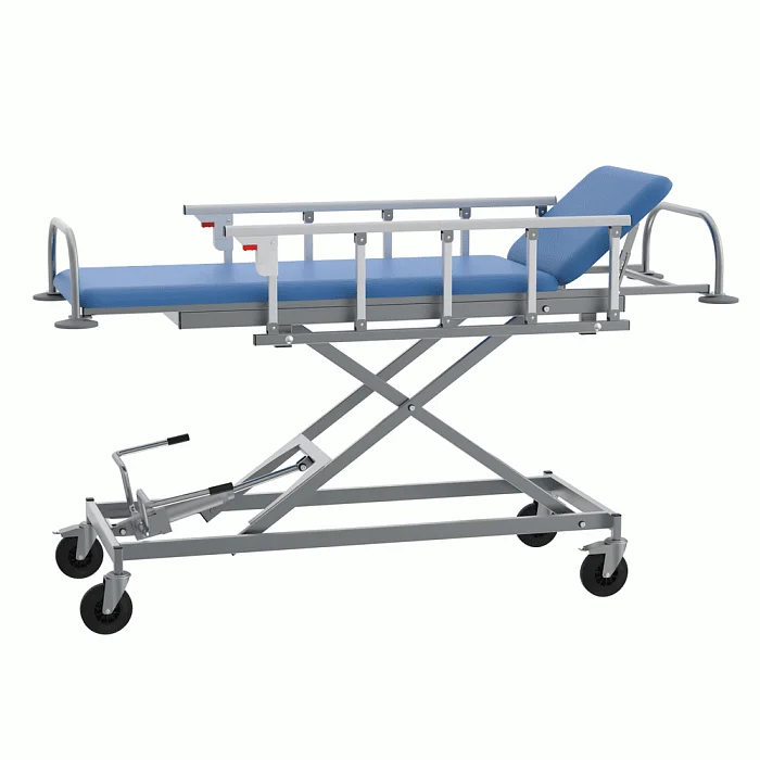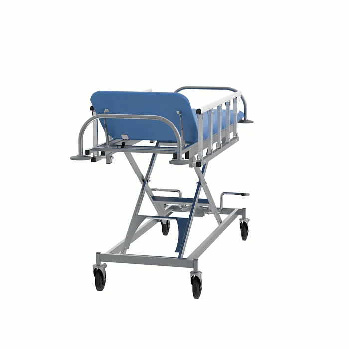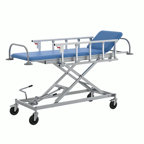 Тележка для перевозки больных СППт VLANA – оборудование, предназначенное для проведения перевязок и осмотра пациентов, малых хирургических операций и иных видов медицинских процедур. Изделие состоит из стального каркаса, складных боковых ограждений и ложа с подголовником.