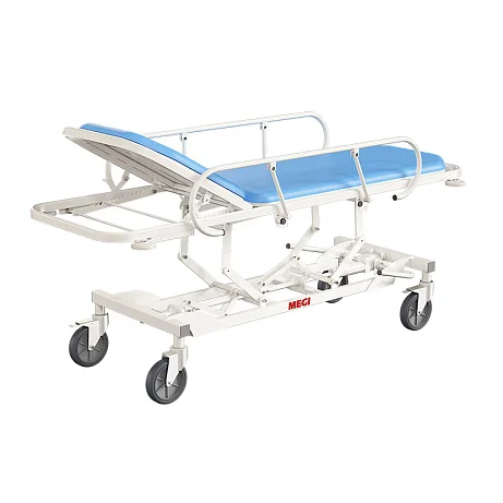 Тележка для перевозки больных ТПБв-01 МСК-440 – оборудование, предназначенное для перевозки пациентов внутри корпусов медицинских заведений различного профиля. Каркас тележки создается из стального тонкостенного профиля. Металл покрывается особой полимерно-порошковой краской. Получаемое покрытие является устойчивым к моющим растворам и дезинфицирующим веществам.