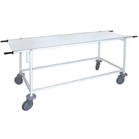 Ручки на носилках выполнены из пластика, длина каждой — 150 мм. Это простой, но важный элемент: пластик приятнее в хвате и менее холодный, чем металл, а длины достаточно для уверенного удержания при перемещении. В условиях потока персонал ценит именно такие «неброские» решения — когда тележка не требует привыкания и не подбрасывает неожиданных нюансов в работе.