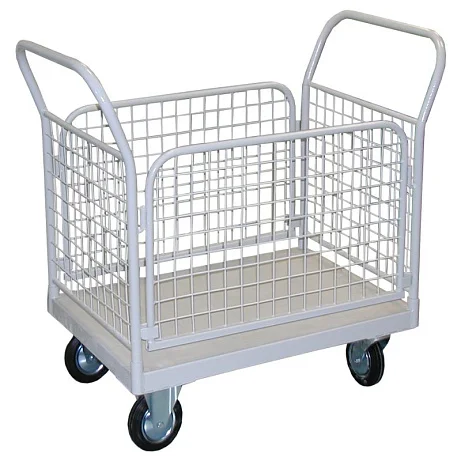 Грузовая тележка с двумя ручками МСК-528.160 – надежный помощник для транспортировки тяжелых грузов на короткие расстояния. Ее прочная металлическая конструкция и большая платформа обеспечивают стабильность и надежность при работе. Удобные ручки, расположенные с обеих сторон, позволяют легко управлять тележкой, обеспечивая комфорт при перемещении. Четыре боковых ограждения из сварной сетки не только предохраняют груз от падения, но и добавляют дополнительную безопасность. Тележка оснащена колесами диаметром 160 мм, что делает ее маневренной. С максимальной нагрузкой до 400 кг и средним сроком службы 10 лет, она идеально подходит для использования в медицинских и других учреждениях.