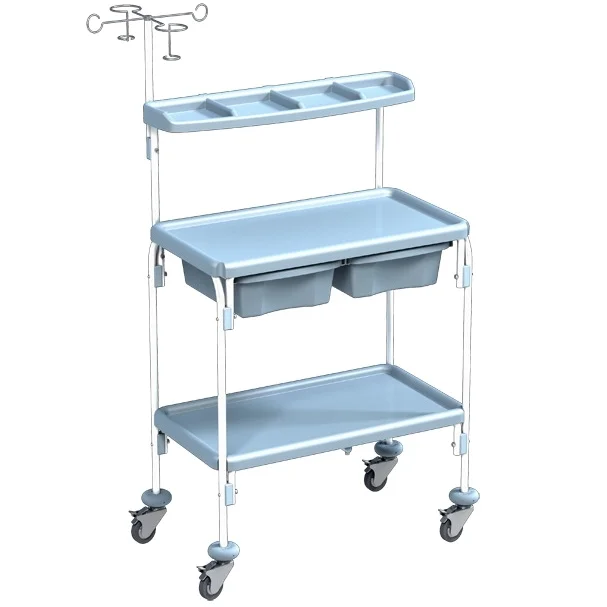 Тележка инструментальная ТИ-2-ВШ-01 Кронт обеспечивает удобную организацию пространства в различных помещениях медицинских учреждений. На такой тележке удобно подавать инструментарий в операционных. Также она позволяет транспортировать сразу большое количество инструмента. Для этого ее конструкция предусматривает поддоны и ящики. Для фиксации положения две колесные опоры из четырех оснащены тормозными механизмами. Обод колесиков прорезиненный.