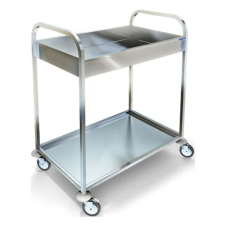 Тележка комбинированная ТП-221 — надёжный помощник для сервировки и сбора посуды в кафе, ресторане или гостинице. Лёгкий разборный каркас из нержавеющей стали AISI 304 (1,2 мм) выдержит повседневную нагрузку, а тонкие, но прочные полки из той же марки стали (0,8 мм) легко чистятся и не боятся следов коррозии. Поставляется в разобранном виде — компактно упакована и проста в сборке.