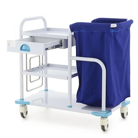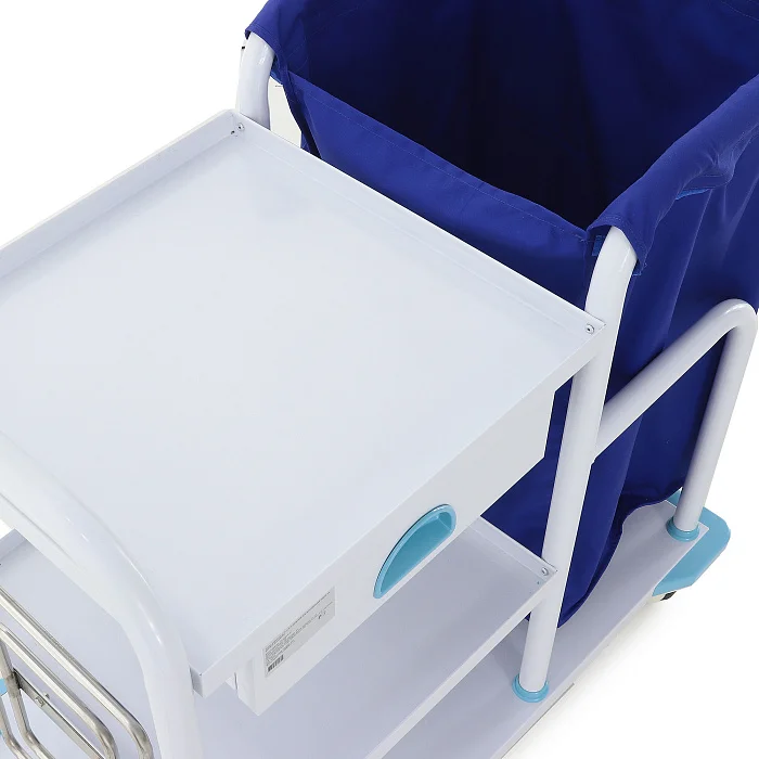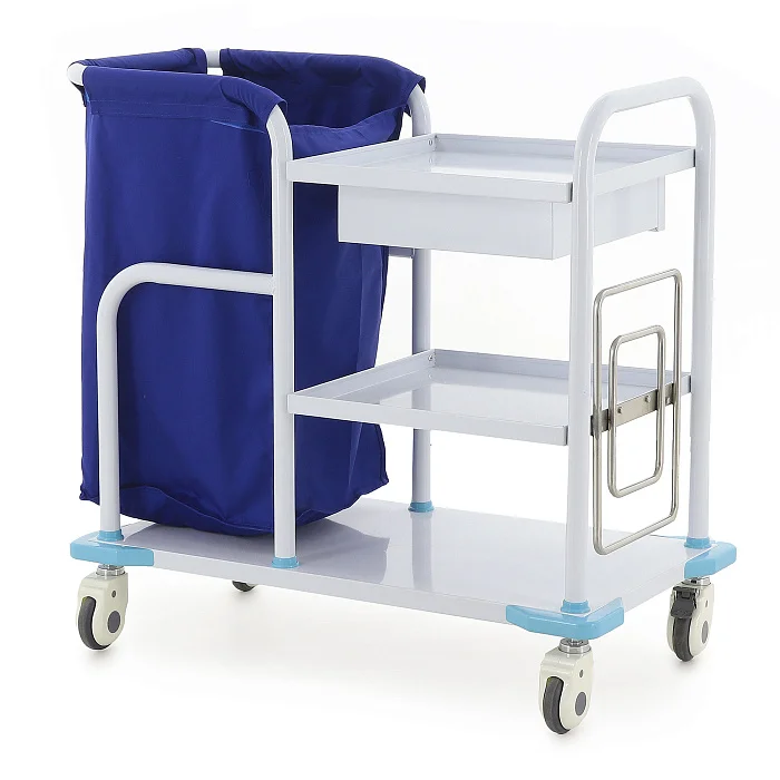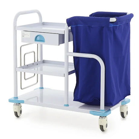 Медицинская тележка МСТ05 TM-019AH-00 — практичное решение для отделений, где важно быстро и аккуратно перевозить бельё, одежду и необходимые принадлежности. Модель оснащена тремя удобными уровнями хранения, выдвижным ящиком и вместительным мешком на 120 литров, что делает её особенно полезной в ежедневной работе персонала. Прочная стальная конструкция с износостойким покрытием легко переносит интенсивную эксплуатацию, а манёвренные колёса с тормозами обеспечивают удобное перемещение и устойчивость.
