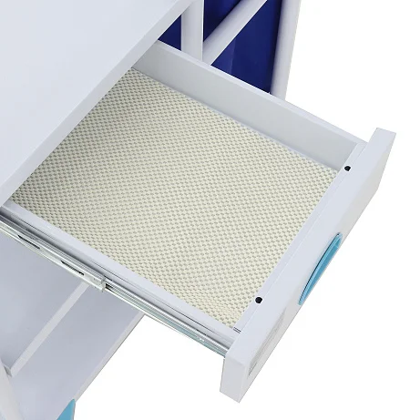 Металлические поверхности покрыты ударопрочной эпоксидной эмалью. Такое решение важно не только с точки зрения долговечности, но и с позиции гигиены: покрытие хорошо переносит регулярную дезинфекцию, сохраняет аккуратный внешний вид и облегчает уборку. Белое исполнение корпуса визуально соответствует стандартам медицинской мебели и хорошо вписывается в оснащение кабинетов, процедурных, постов и хозяйственных помещений.