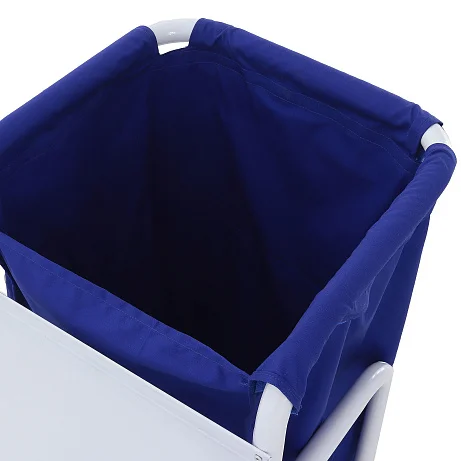 Три функциональных уровня позволяют грамотно распределять содержимое. Верхняя столешница подходит для предметов, которые должны быть под рукой в первую очередь. Средняя полка даёт дополнительное место для расходников и инвентаря, а нижняя часть конструкции дополнена вместительным мешком объёмом 120 литров, что особенно удобно при работе с бельём и одеждой.