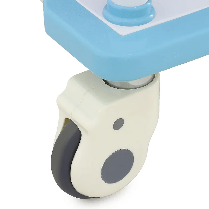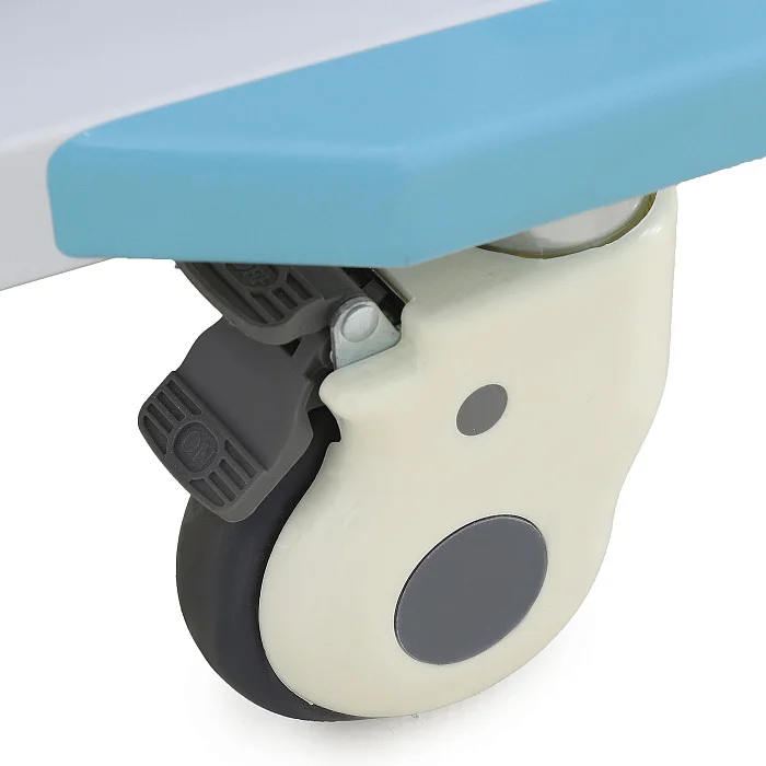 На двух передних колёсах предусмотрены индивидуальные тормоза с блокировкой поворота, благодаря чему тележку можно надёжно зафиксировать в нужной точке. Дополнительную защиту при контакте с мебелью, стенами и оборудованием обеспечивают пластиковые бамперы. Для медицинской среды, где важна аккуратность эксплуатации, это далеко не мелочь, а действительно полезная деталь.