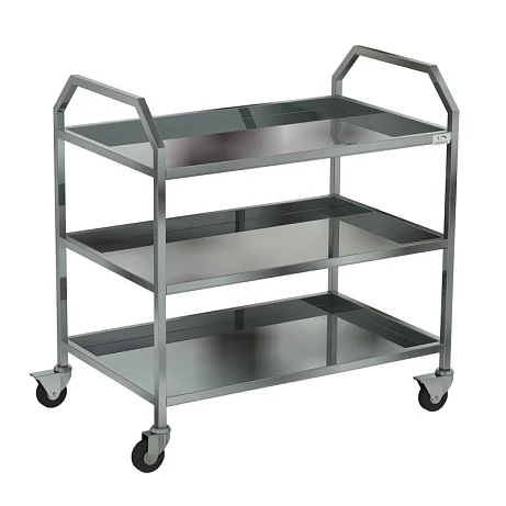 Трехуровневая тележка сервировочная ТС3-80/50 предназначена для перевозки готовых блюд на предприятиях общепита или транспортировки инвентаря. Тележка оснащена четырмя колесиками диаметром 10 сантиметров, которые свободно вращаются. Каркас изделия выполнен из профильной нержавеющей трубы. Самая лучшая цена на тележку сервировочную ТС3-80/50 предложена в магазине МедМебель, который специализируется на продажах медицинской мебели. Закажите тележку прямо сейчас, оформив заказ на сайте. Возможна услуга доставки в пределах Москвы.Возможно изготовление мебели из нержавеющей стали по Вашим чертежам и размерам. Для просчета возможности изготовления изделия, не представленного на сайте, и получения коммерческого предложения, просим обращаться к менеджерам компании по телефону или электронной почте.